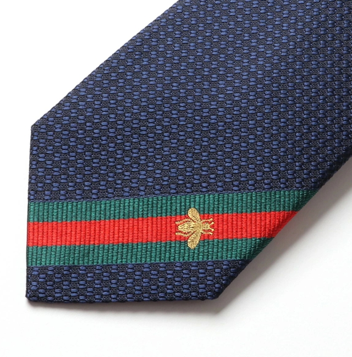 GUCCI 男士領帶 真絲提花織帶蜜蜂圖案